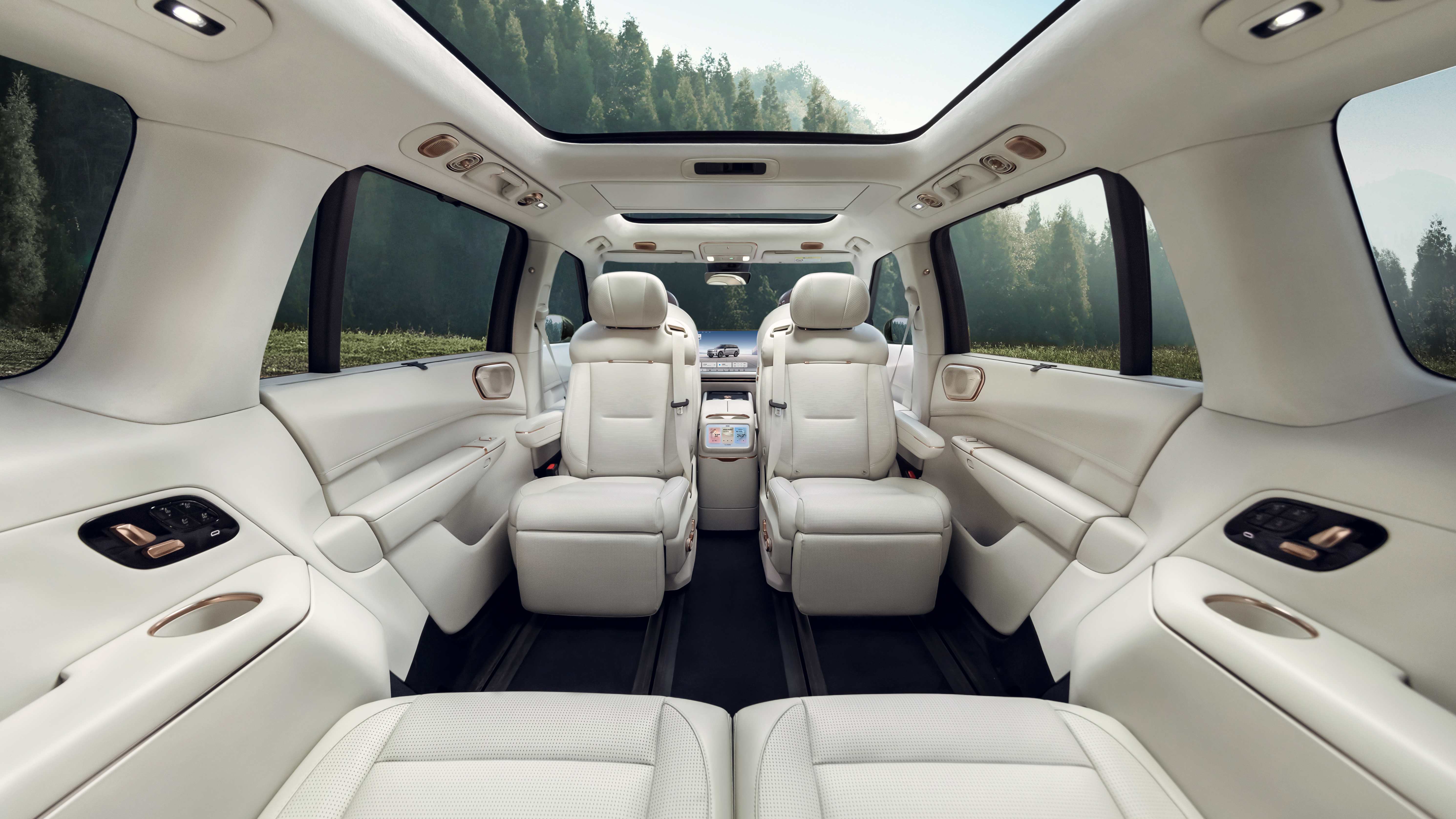 作為一款大6座車型,領克900車身尺寸分別為5240毫米、1999毫米和1810毫米,軸距3160毫米,采用2-2-2座椅布局,第二排座椅可以前后滑動55厘米,并可以向后180度旋轉,與第三排對坐;第三排座椅可以前后移動12.5厘米,第二排和第三排最大距離1.7米,車內最高近1.3米。此外,6個座椅均具備加熱和按摩功能。