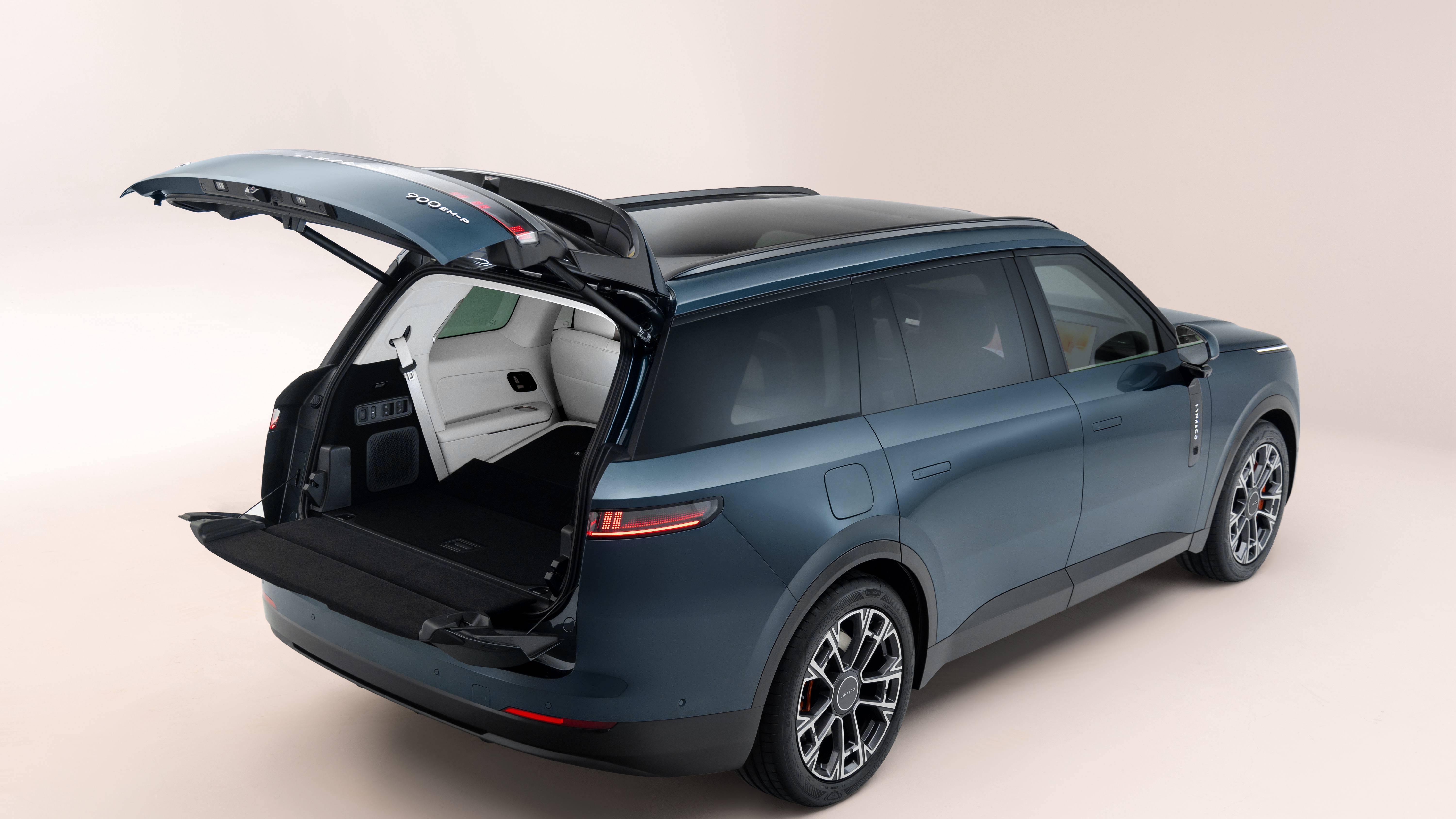 領克900尾門采用上下對開的“天地門”設計,可以單獨打開。尾門上半部分向上掀開,下半部分下翻并可與后備箱平齊,最大承重300公斤。