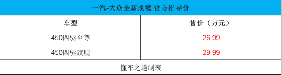 8月5日,一汽-大眾全新攬境 正式上市,新車共推出2款車型, 售價區間26.99-29.99萬元。全新攬境采用最新設計語言,車身尺寸更大,空間優勢更明顯,同時新車在高階智能輔助駕駛系統和智能座艙方面也進行重點升級,科技感更強。