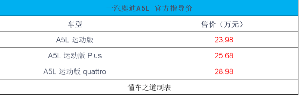 8月7日,一汽奧迪A5L正式上市,新車共計推出3款車型,售價23.98-28.98萬元。由于奧迪的產品命名規則改變,新車更名為奧迪A5L。新款車型基于全新PPC燃油車平臺打造,引入華為乾崑輔助駕駛,車內配備三塊屏,提供云感座椅,搭載第五代EA888發動機,高配車型還引入奧迪最新的混動系統。